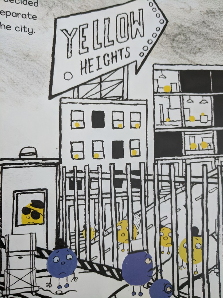 Let me first say, I just discovered this book and it is WONDERFUL! I read it to both my 7 and 5, and they both enjoyed it for similar and different reasons. One, it’s a colorful tale that starts with the primary colors living in harmony until RED decides they are the best. The other colors disagree and then segregate. Until one day, a yellow takes a liking to blue, they MIX and make a new color they call GREEN. The story unfolds and new colors start mixing with non like colors and in doing so, make a more beautiful colorful world.